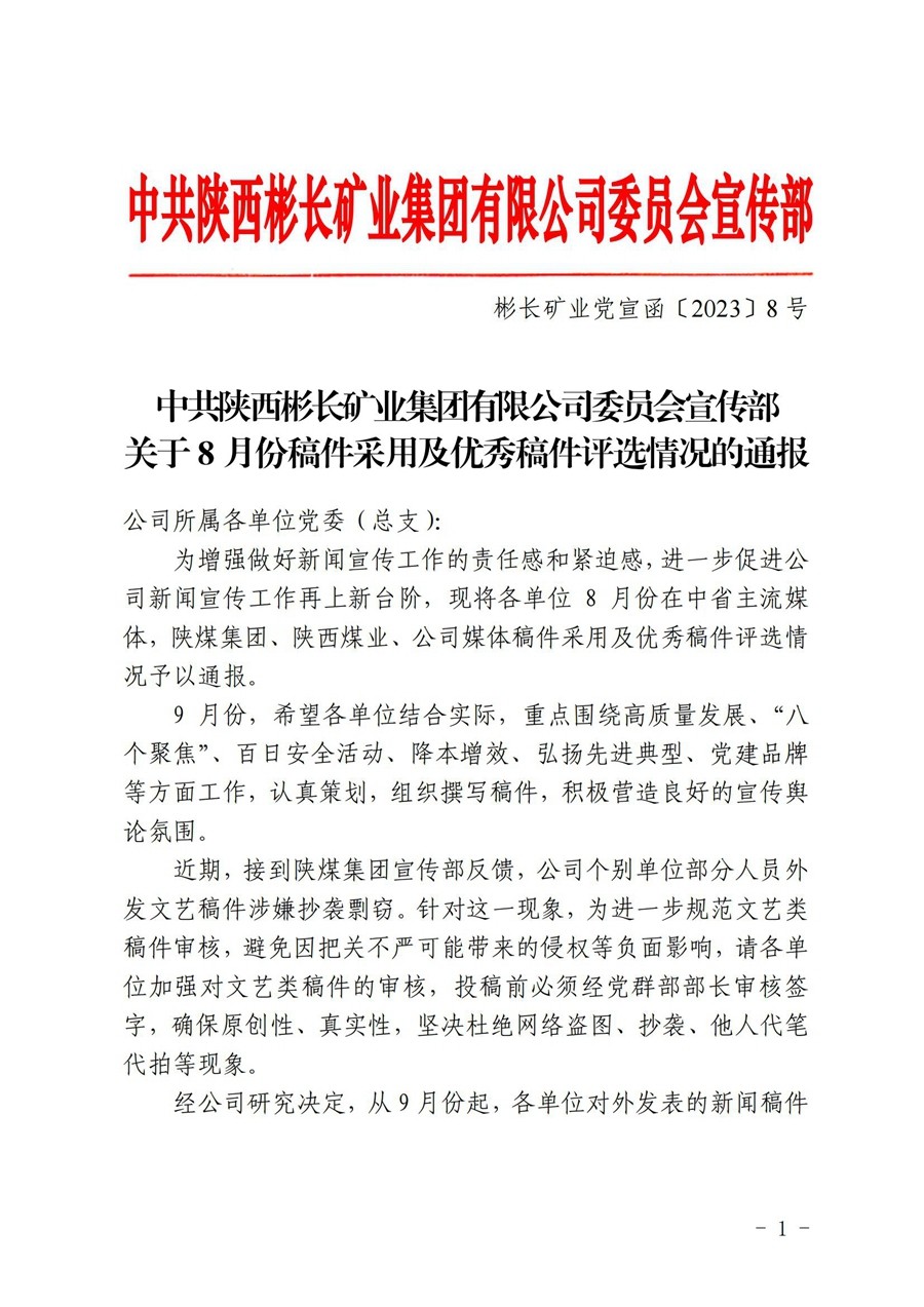 關于8月份稿件采用及優秀稿件評選情況的通報