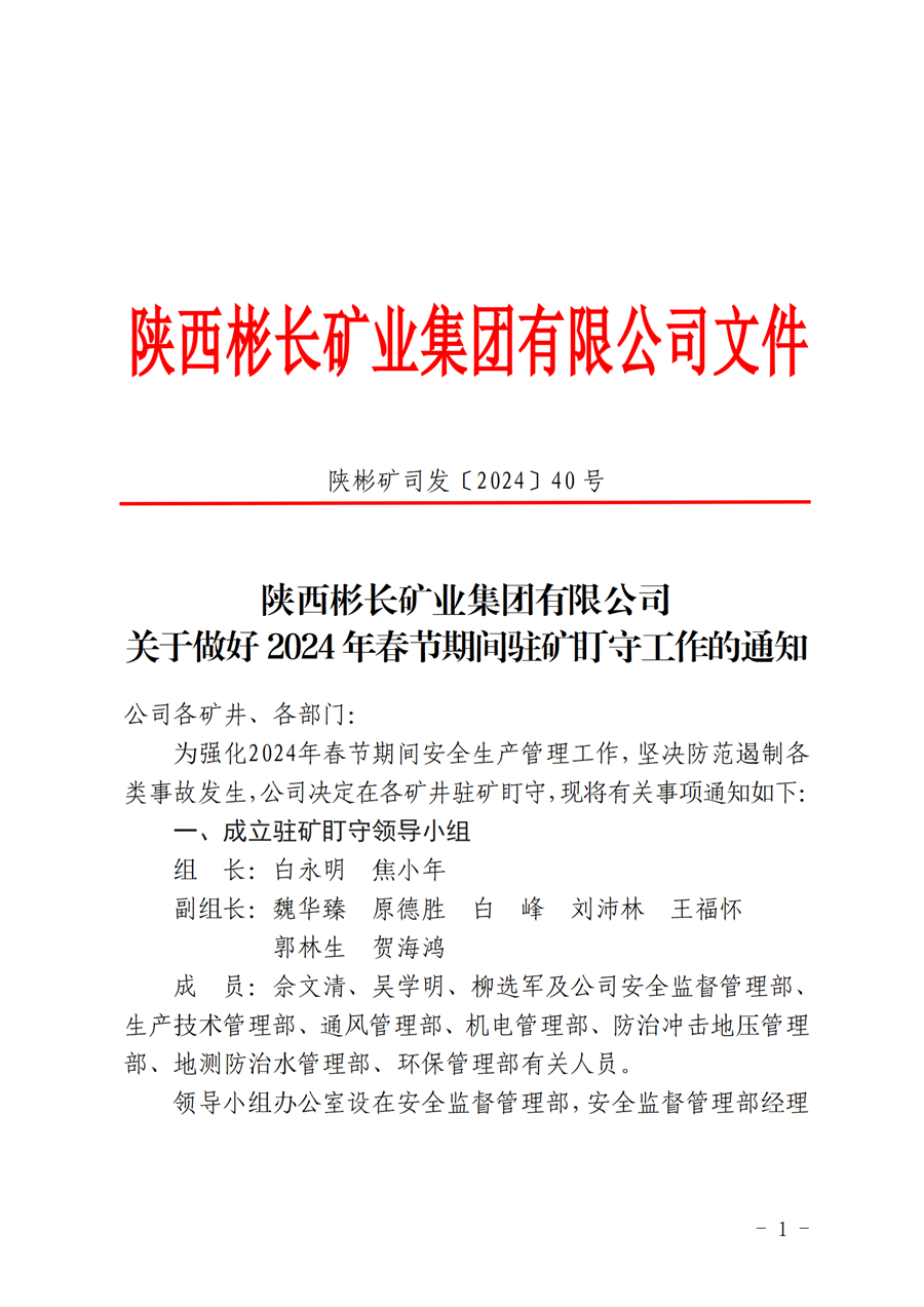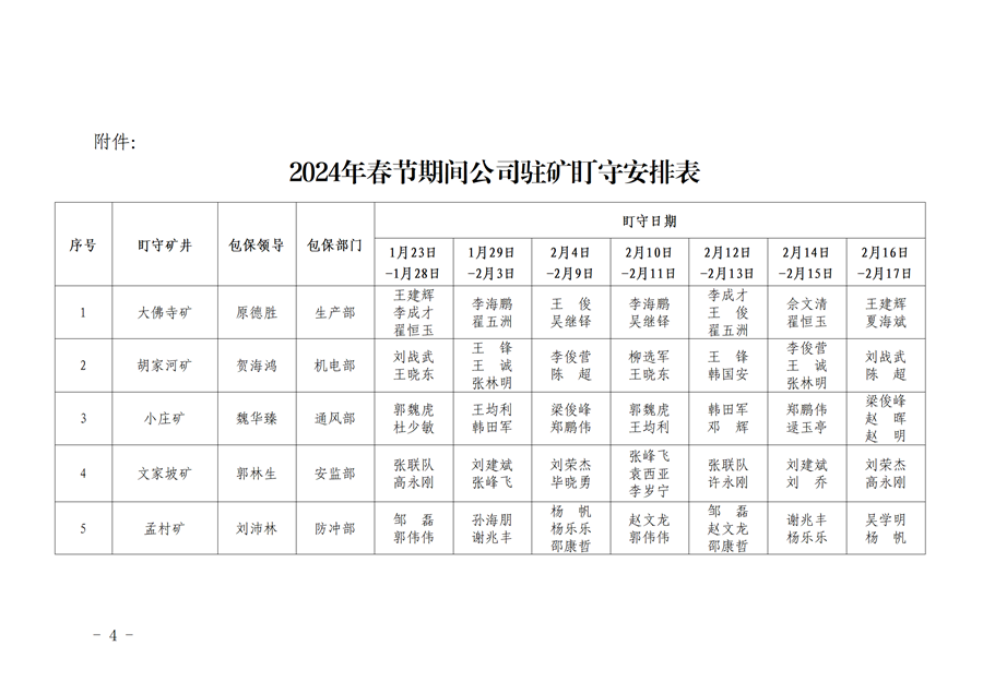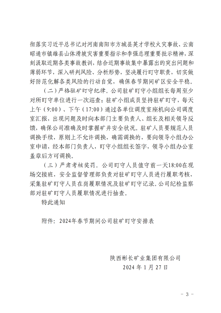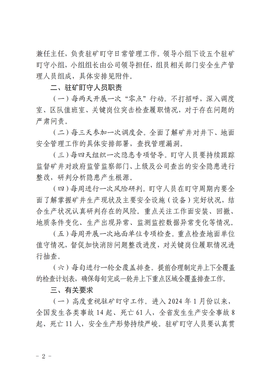 關(guān)于做好2024年春節(jié)期間駐礦盯守工作的通知