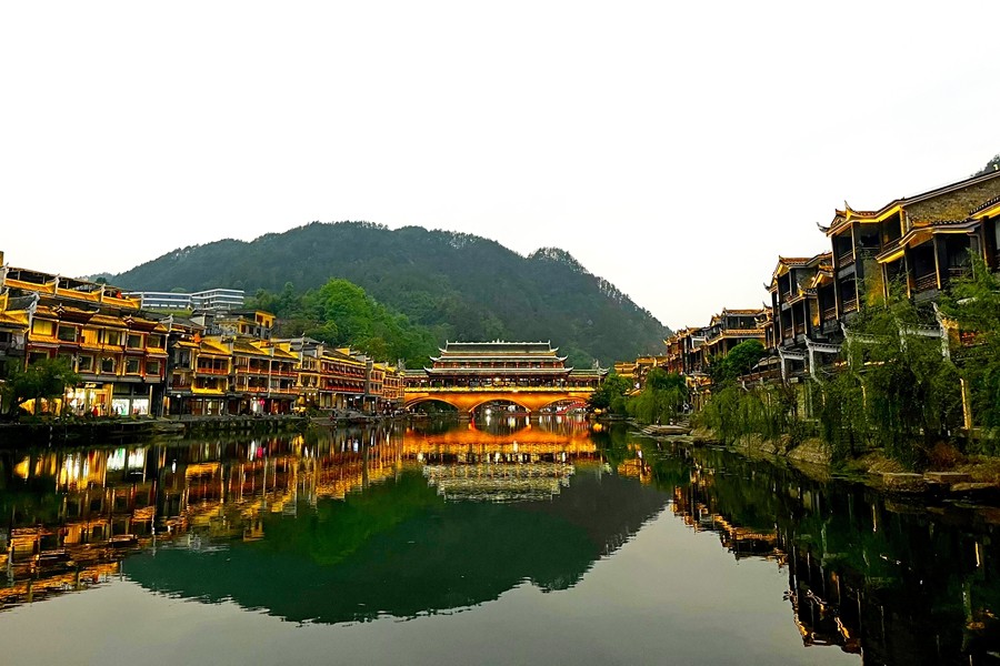 鳳凰古城,舊稱鎮筸城,位于湖南省湘西土家族苗族自治州的西南部,占地面積約10平方千米,由苗族、漢族、土家族等28個民族組成,因背依的青山酷似一只展翅欲飛的鳳凰而得名。城內青石板街道、江邊木結構吊腳樓,以及朝陽宮、古城博物館、楊家祠堂、沈從文故居、熊希齡故居、天王廟、大成殿、萬壽宮等建筑,全都透著古城特色。古城現有文物古建筑68處,古遺址116處,明清時代特色民居120多棟,各種廟祠館閣30多座,是中國西南現存文物古建筑最多的縣。(文家坡礦 王毅)