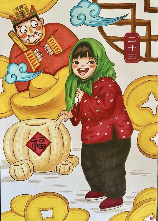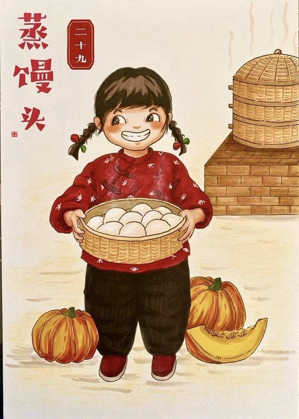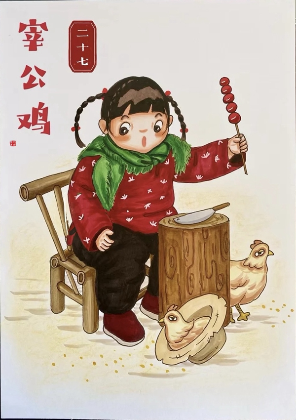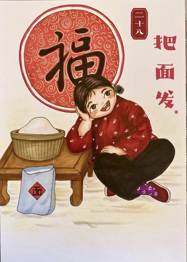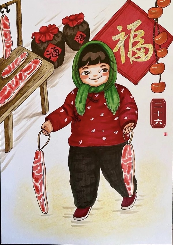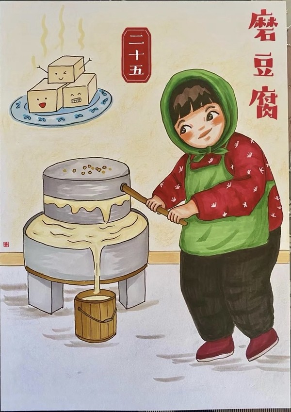 小孩兒小孩兒你別饞,過了臘八就是年;臘八粥,喝幾天,哩哩啦啦二十三;二十三,糖瓜粘;二十四,掃房子;二十五,磨豆腐;二十六,去買肉;二十七,宰公雞;二十八,把面發(fā);二十九,蒸饅頭;三十晚上熬一宿,歡天喜地過大年。