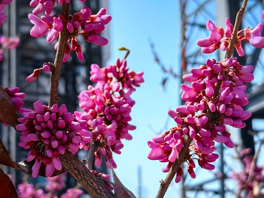 三月的胡家河礦,春色美如畫。漫步在礦區里,紫荊花、蒲公英、紫葉李等次第開放,一陣微風吹過,柳條翩翩起舞,花朵隨風舞動,搖曳多姿。春光美、春風柔、春花艷,人在花中走,恰似畫中游。捧起這抹春光,在馥郁醉人的花香中陶醉。(張寶龍)