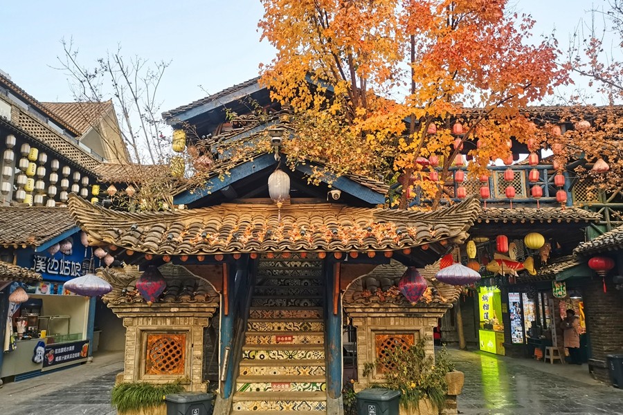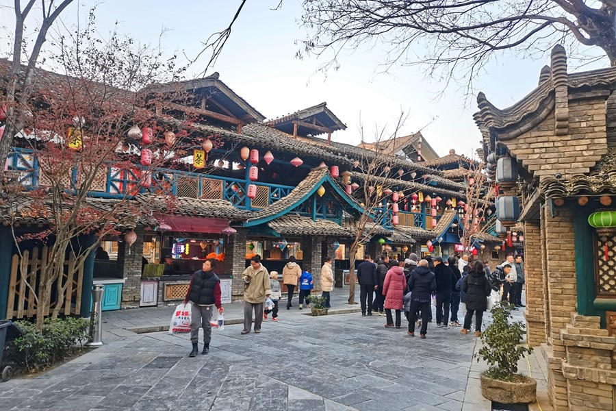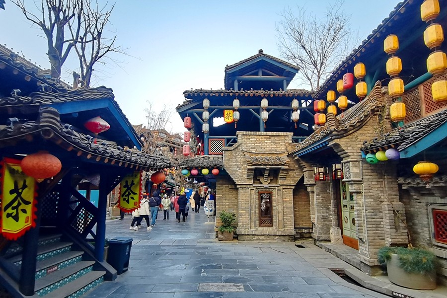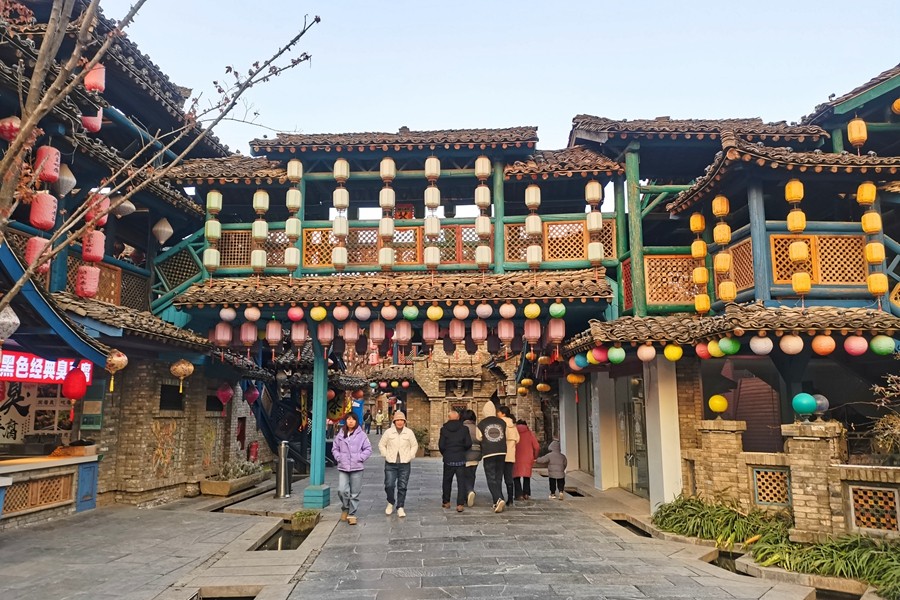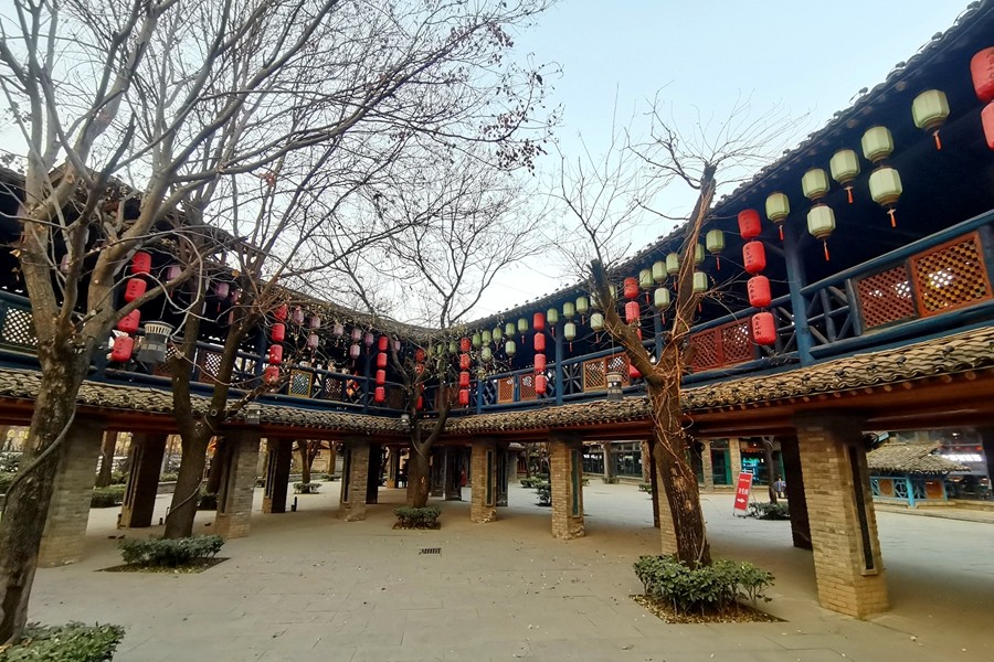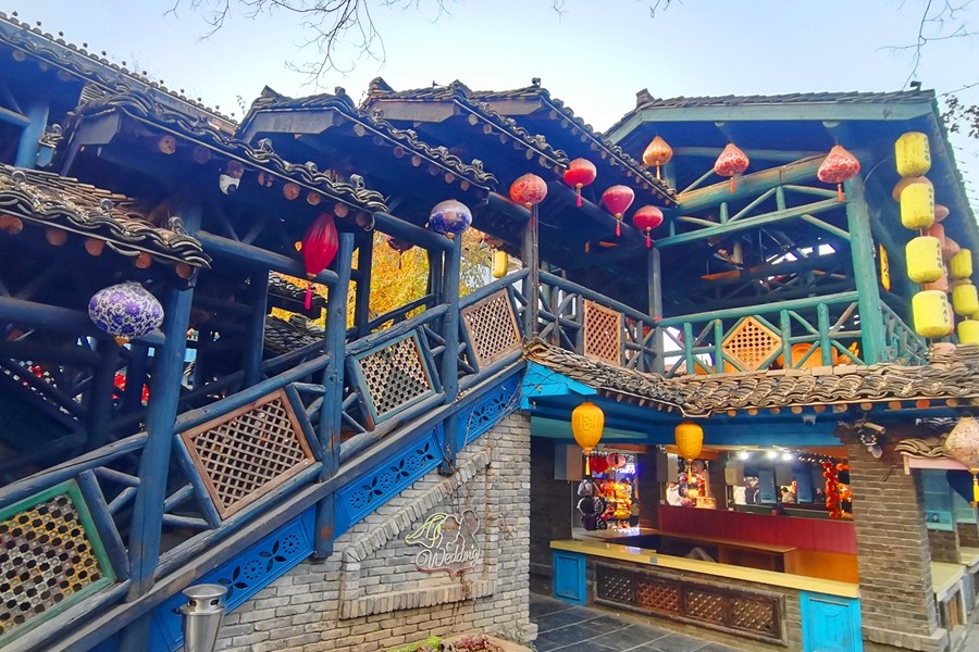 周至水街位于陜西省西安市周至縣,是國內首家立體水景、互動式濱河生態主題公園,被譽為“最具魅力旅游攝影基地”“關中版清明上河圖”“中國北方最美水鄉”。其中煙火巷子的仿古建筑青磚黛瓦、燈籠高掛、古色古香。漫步街區,熙熙攘攘的市井風情,煙火氣息十足。(大佛寺礦 馮春朋)