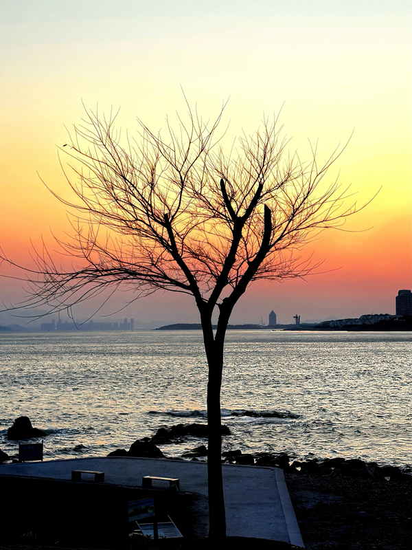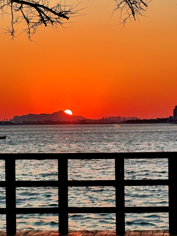 落日為信號,海風作和弦,青島的黃昏總在鏡頭里藏滿溫柔。當橘黃色的光暈浸透云層,海浪便捧起碎金搖曳;成群的海鷗,正以翅膀裁剪著靛藍的海天——倏忽掠過鏡頭,定格成靈動的標點。潮汐呼吸間,山、海、城共譜一曲克萊因藍與落日橘的交響詩。(胡家河礦 魏銥遙)