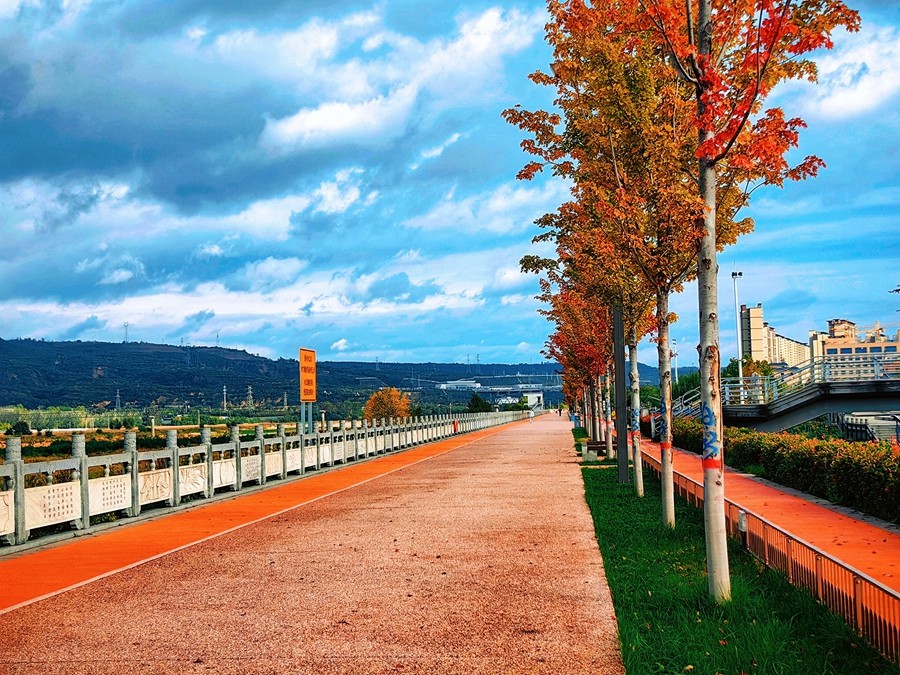 彬州的秋,是沿著河堤一路漫燃開(kāi)的。成排的楓樹(shù)如火如荼,把整條河堤大道浸成一條溫暖的緋紅長(zhǎng)廊。可若想真正讀懂秋天,得俯身望那水里,一枚紅葉靜靜臥在波紋間,像秋天寫給流水的私信,字里行間滿是溫柔的確定。
