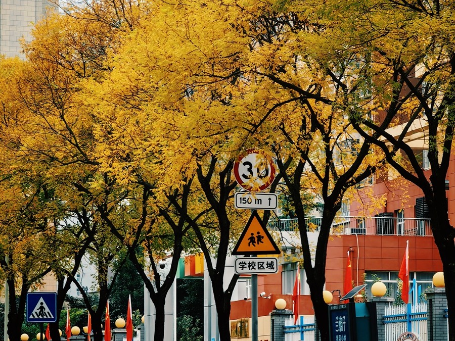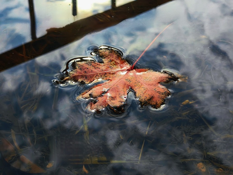 河灘的荒草泛著淺黃,與堤上熱烈的紅、燦爛的黃疊出默契的層次。沒(méi)有刻意構(gòu)圖,不過(guò)是走過(guò)時(shí),恰好撞進(jìn)了一束光。但這“燃于枝頭”與“臥于流水”的一“顯”一“藏”間,秋的訊息已足夠完整。它在枝頭燒得熱烈,在水面漂得輕盈,更在每個(gè)路過(guò)人的心里,悄悄留下了深淺不一的、關(guān)于秋的印記。(張寶龍)