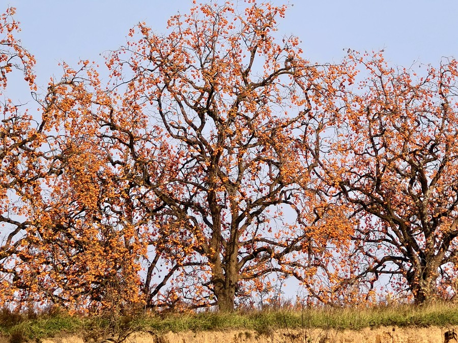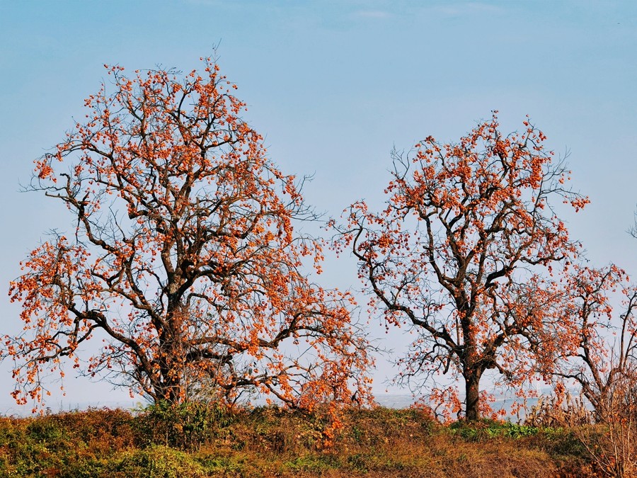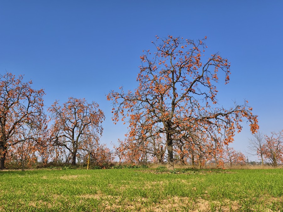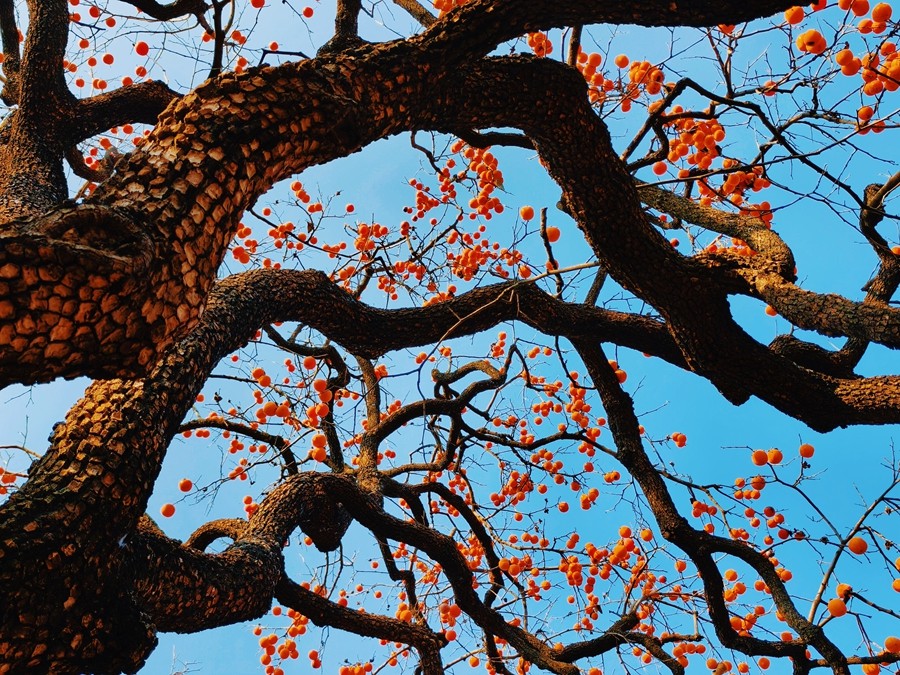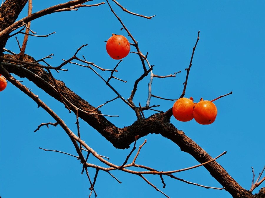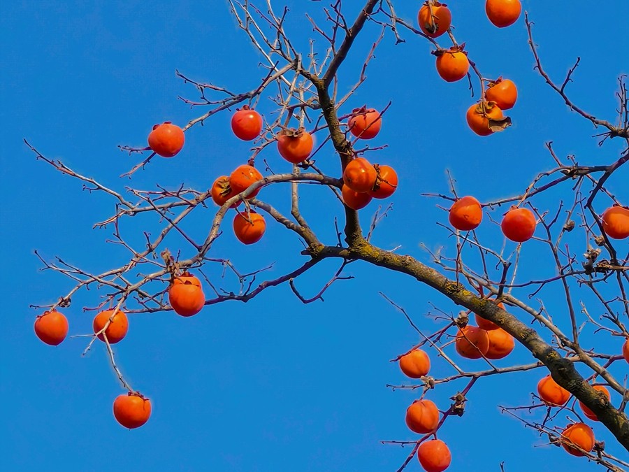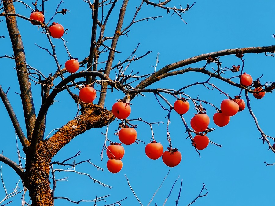循著記憶里的甜,走入家鄉(xiāng)深秋的柿子林。穿行其間,腳下是沙沙的落葉,頭頂是擠擠挨挨的暖紅。它們不像城里精裝的果子,個個完美;家鄉(xiāng)的柿子帶著風(fēng)霜的斑點、鳥雀的啄痕,卻紅得毫無保留,像把所有秋陽都釀進了心里。