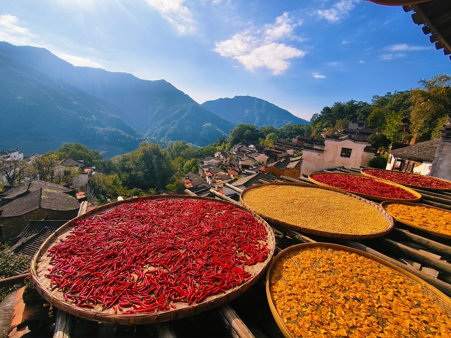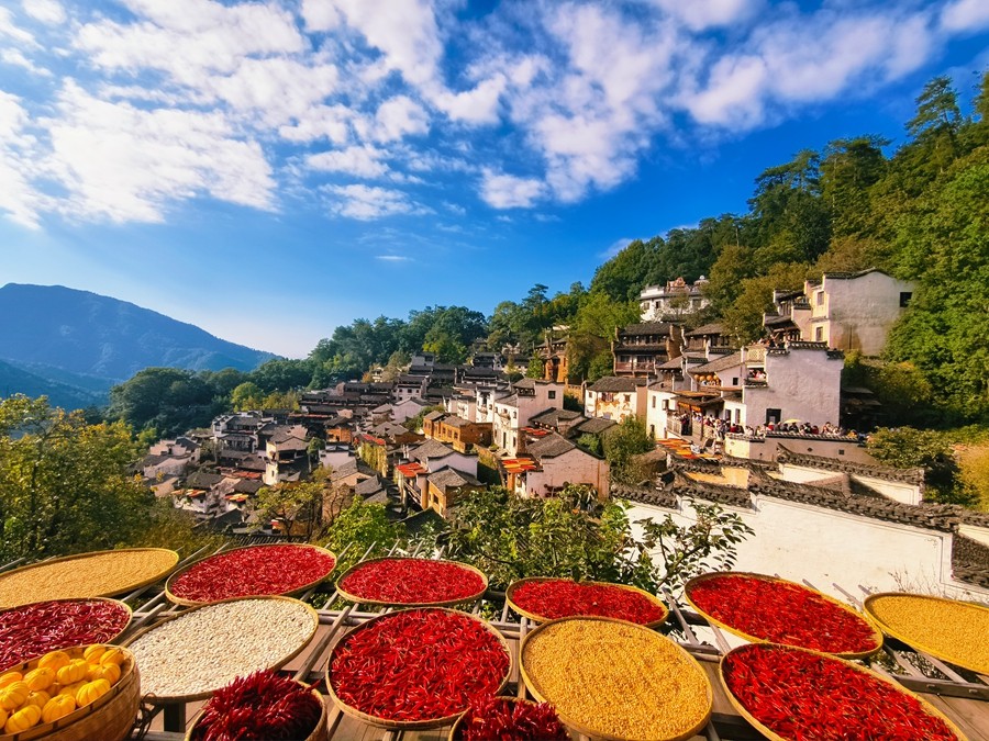 江西婺源篁嶺,是嵌在群山褶皺里的詩意村落。晨霧漫過黛瓦白墻時(shí),馬頭墻的翹角似從水墨中透出,待霧散,家家戶戶木架上的紅椒、黃菊、玉米便撞入眼簾,將秋日的豐盈曬成一幅鮮活的彩畫。青石板巷里,青苔沾著晨露,耳畔是鳥鳴與村民的軟語,偶有山風(fēng)拂過,帶著作物的清香與泥土的溫潤(rùn),連時(shí)光都在此處慢了腳步,讓人恍惚間墜入了江南最溫婉的夢(mèng)境。(小莊礦 李青鋒)