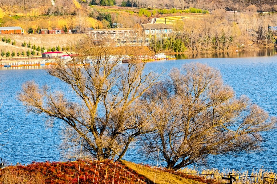 林皋湖位于渭南市白水縣,它有著獨特的靜謐與美麗。暖陽灑下,將廣闊的湖面染成透亮的藍,充盈的湖水,似揉碎了天空,又混著遠山的黛色,波光粼粼。岸邊的人工沙灘呈暖黃色,與湖水相映成趣。黃櫨樹凝著秋的余韻,枝頭燃著暗紅與橙黃,蘆葦蕩泛黃,在風中搖曳出細碎的金輝。遠處的山裹著淺灰的輪廓,山尖偶有薄霧,像給山脊系了條軟紗。游人或在環湖步道上漫步,或在親水平臺上靜坐賞魚,享受著這冬日的寧靜與美好。(小莊礦 唐曉軍)