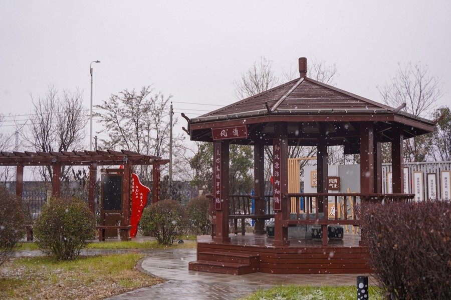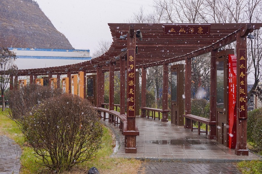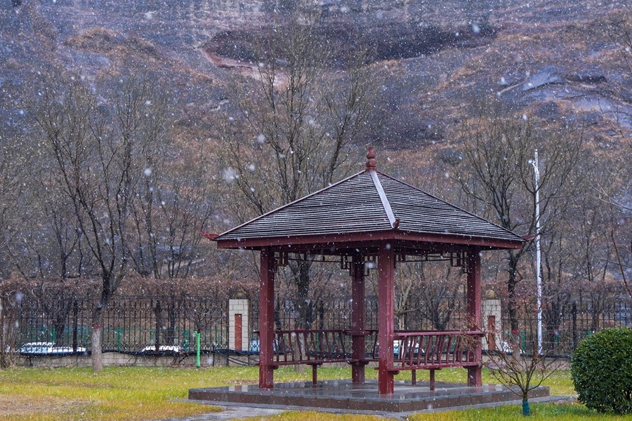 初雪很輕。主井天輪在薄雪中轉(zhuǎn)動,捻出地心的溫度。清風(fēng)園的亭子靜立,朱紅檐角托著雪,石桌積滿舊日沉默。而原煤倉的巨塔在飛雪中愈發(fā)巍峨,它們收納了來自地心的煤海,此刻也正收藏這場初雪。雪落在井架與亭角,撫過留白與棱角。這片礦區(qū)記得所有轉(zhuǎn)動與覆蓋,新與舊,在雪的懷抱里同頻呼吸。(小莊礦 唐曉軍)