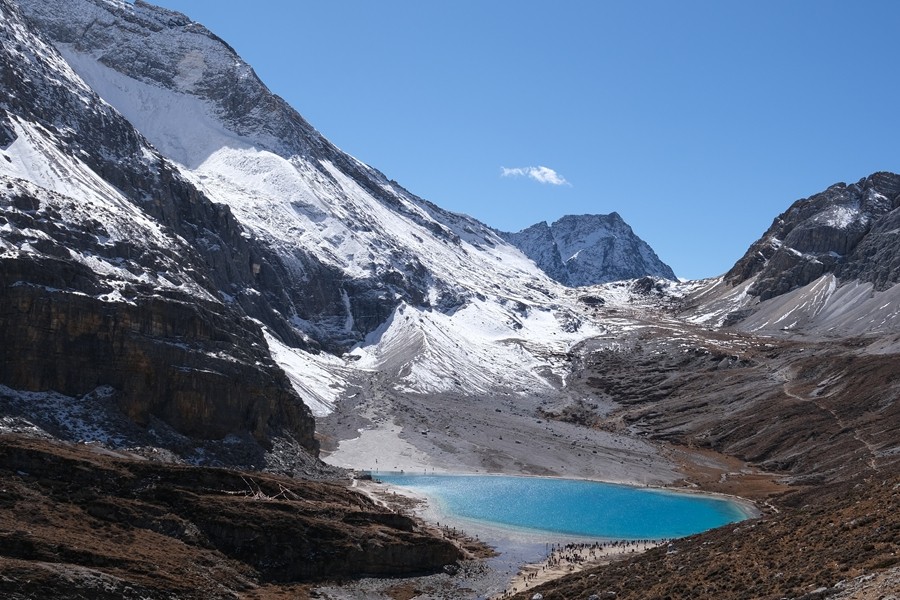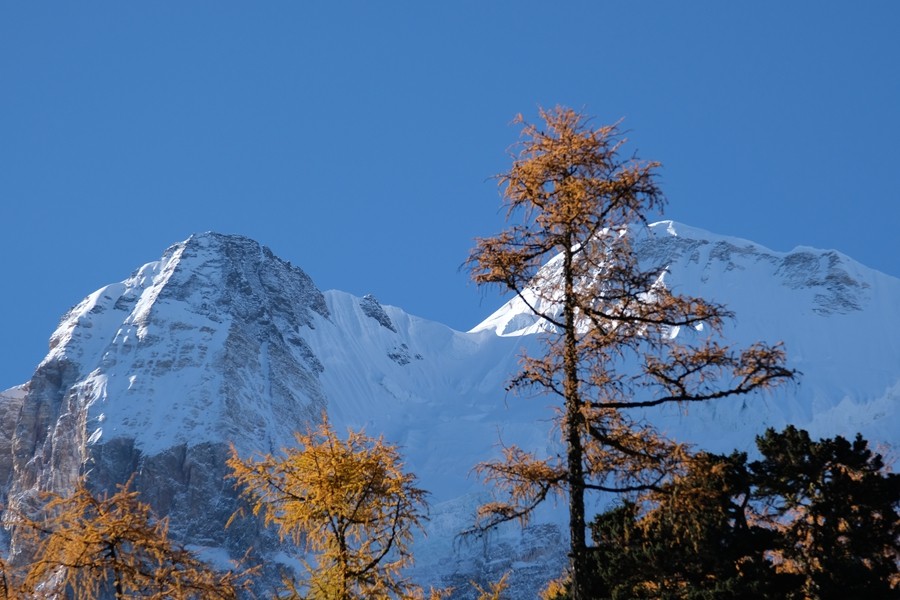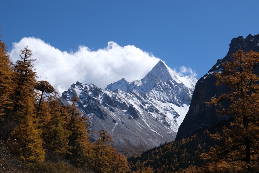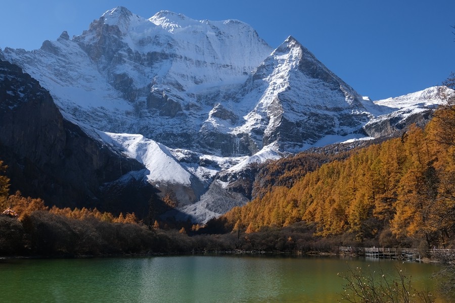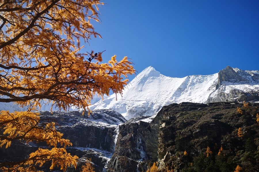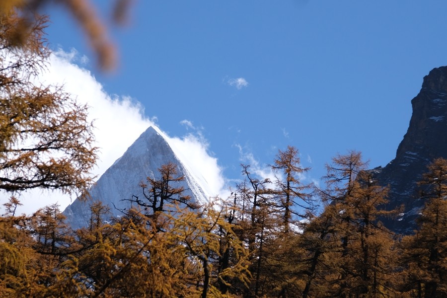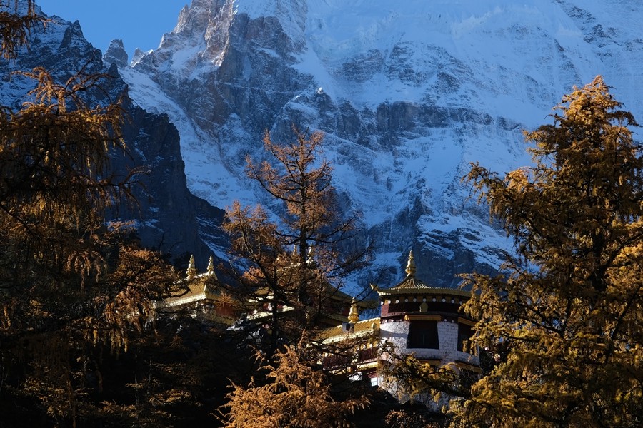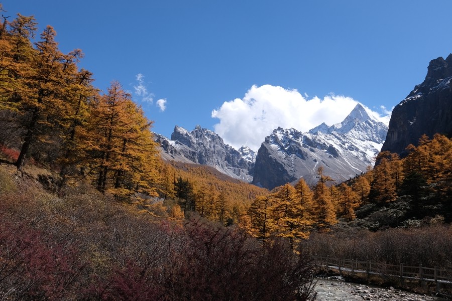 稻城亞丁,是雪山與秋色共織的童話。仙乃日、央邁勇、夏諾多吉三座神山巍然屹立,終年積雪的峰頂在秋陽下熠熠生輝。山谷間明黃的楊樹、赤紅的灌木、墨綠的冷杉等層林盡染。牛奶海與五色海如天神遺落的寶石,鑲嵌在鎏金草甸與湛藍天穹之間。每一步前行,都是奔赴心靈凈土的朝圣。(小莊礦 周彬)